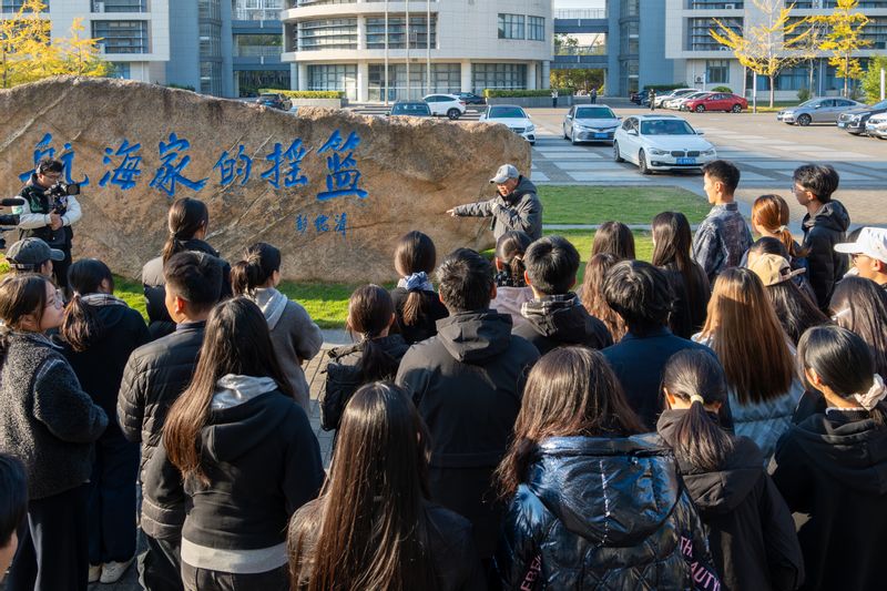 浸校史课。活动特邀校关工委常务副主任肖宝家担任主讲,以校园地标为实景课堂,通过“行走的思政课”形式,带领青马班学员重温学校发展历程,感悟航运报国使命。